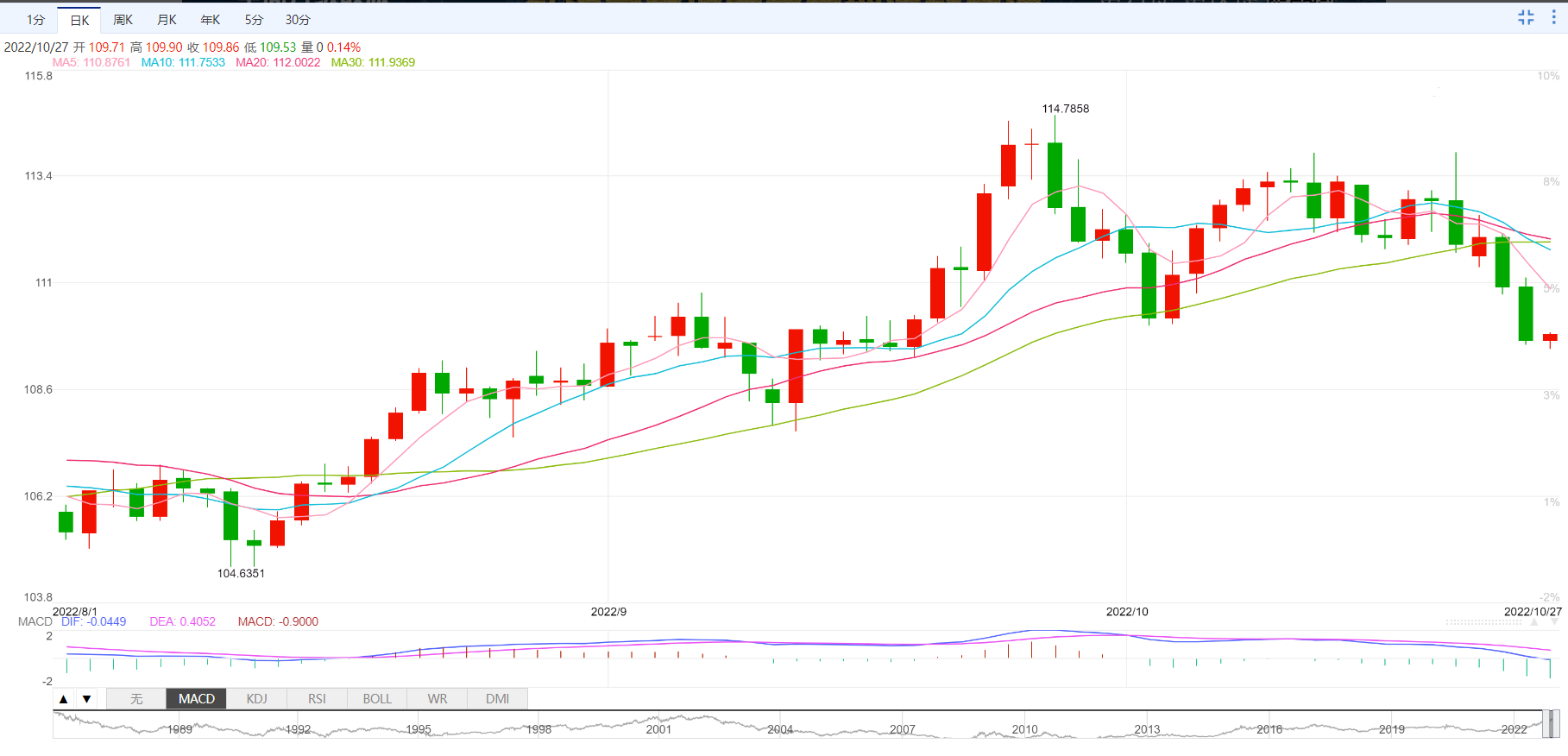 在连续两个交易日大幅下跌之后,该指数现在收复了部分失地,并在周四接近关键障碍110.00。