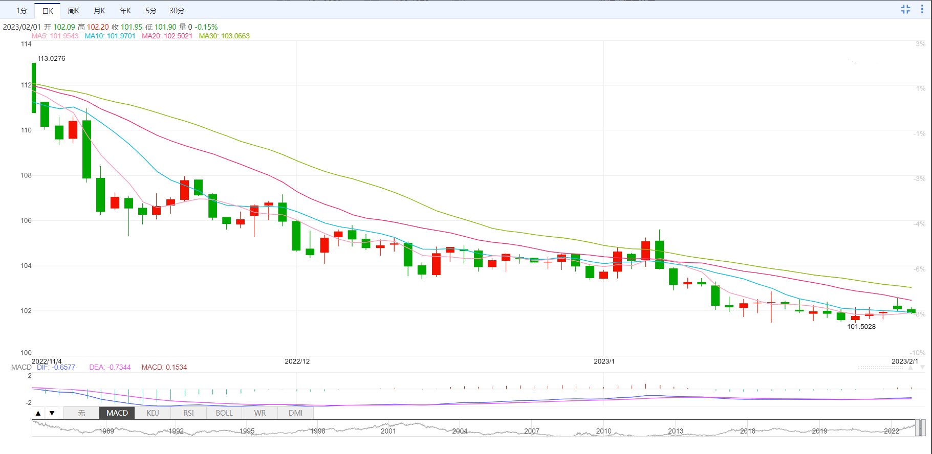 现在,美元指数在102.03点回落了0.06%,突破101.50(2023年1月26日的低点)将打开通往101.29(2022年5月30日的月度低点)的大门,最终是100.00(心理水平)。