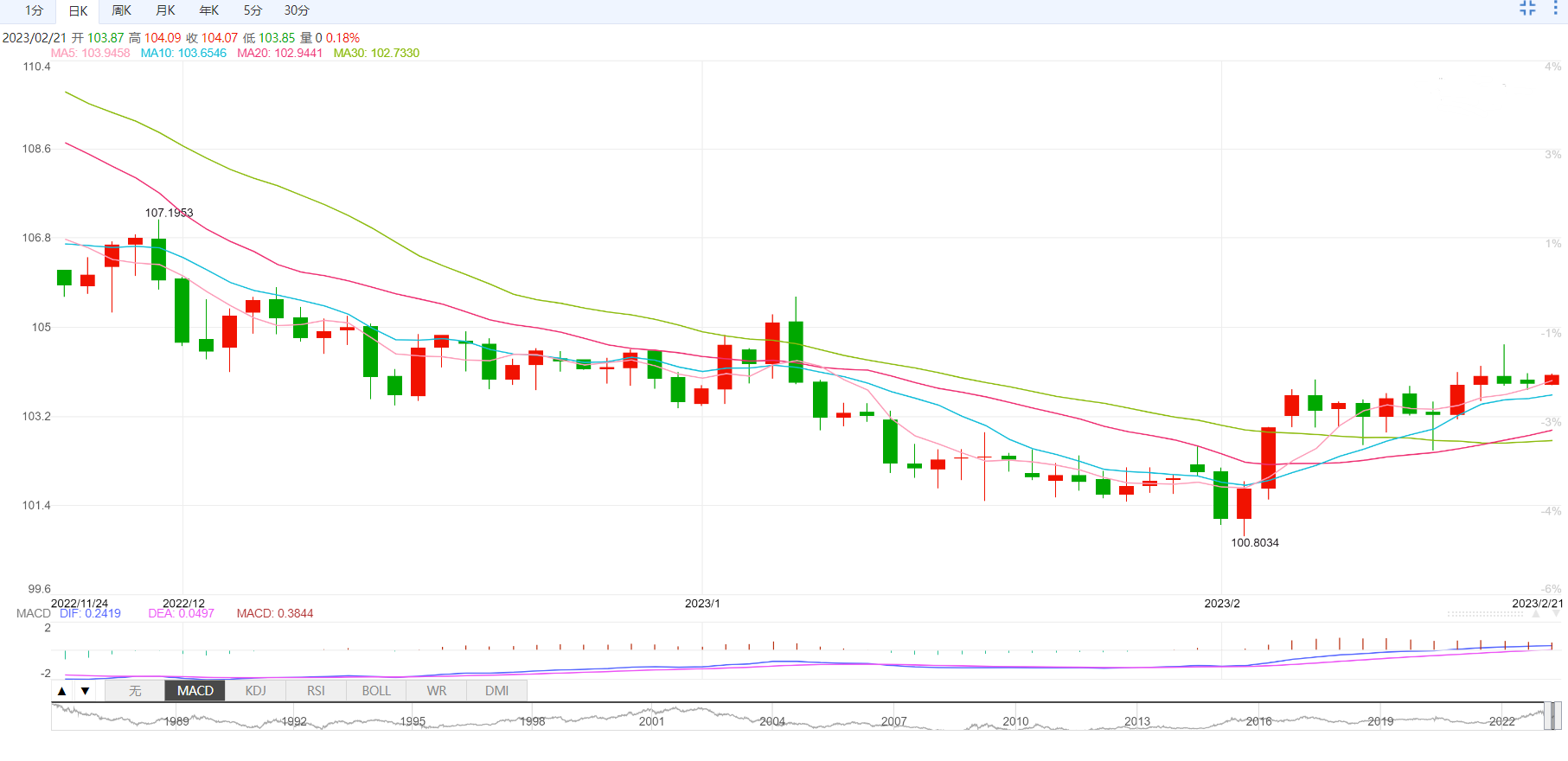 2月22日,会议纪要将公布,很可能表明是否认真考虑50个基点的变动,如果是这样,美元可能会吸引进一步的需求,这可能足以在可预见的未来将美元指数保持在104.50以上。