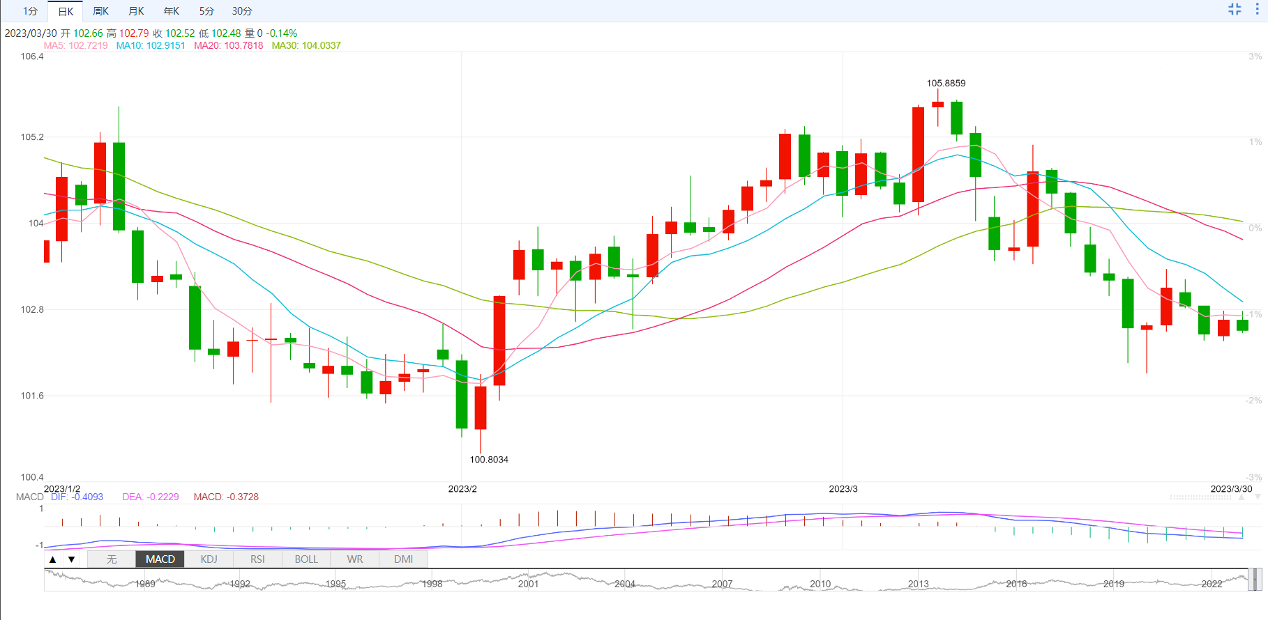 由于美国国债收益率温和反弹以及全球市场普遍缺乏方向,在周四欧洲市场开盘前,该指数似乎在103.00区域下方徘徊。