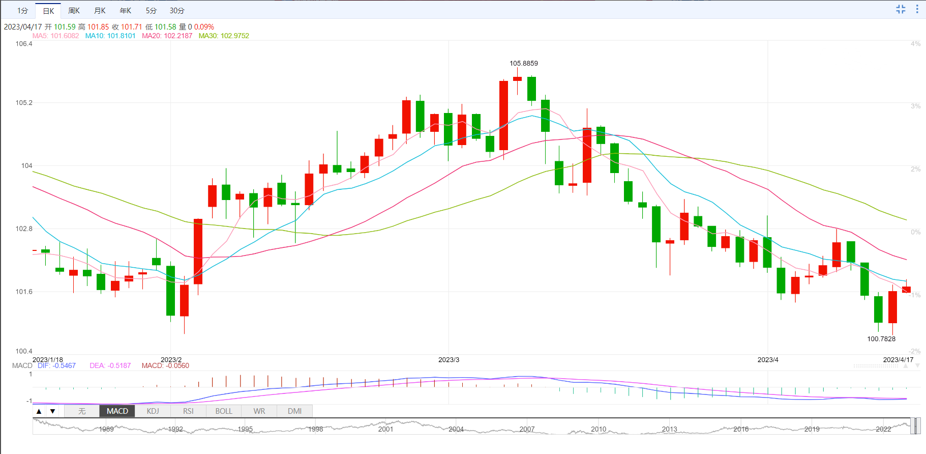 周五,美元指数从一年低点反弹,原因是美联储讲话和数据不像一些经济学家预期的那么疲弱,市场情绪重新转向支持鹰派。