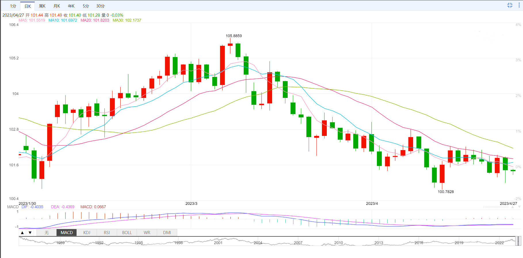 现在,美元指数下跌0.13%至101.30,突破100.78(2023年4月14日的低点)将打开通往100.00(心理水平)的大门,最后是99.81(2022年4月21日的周低点)。