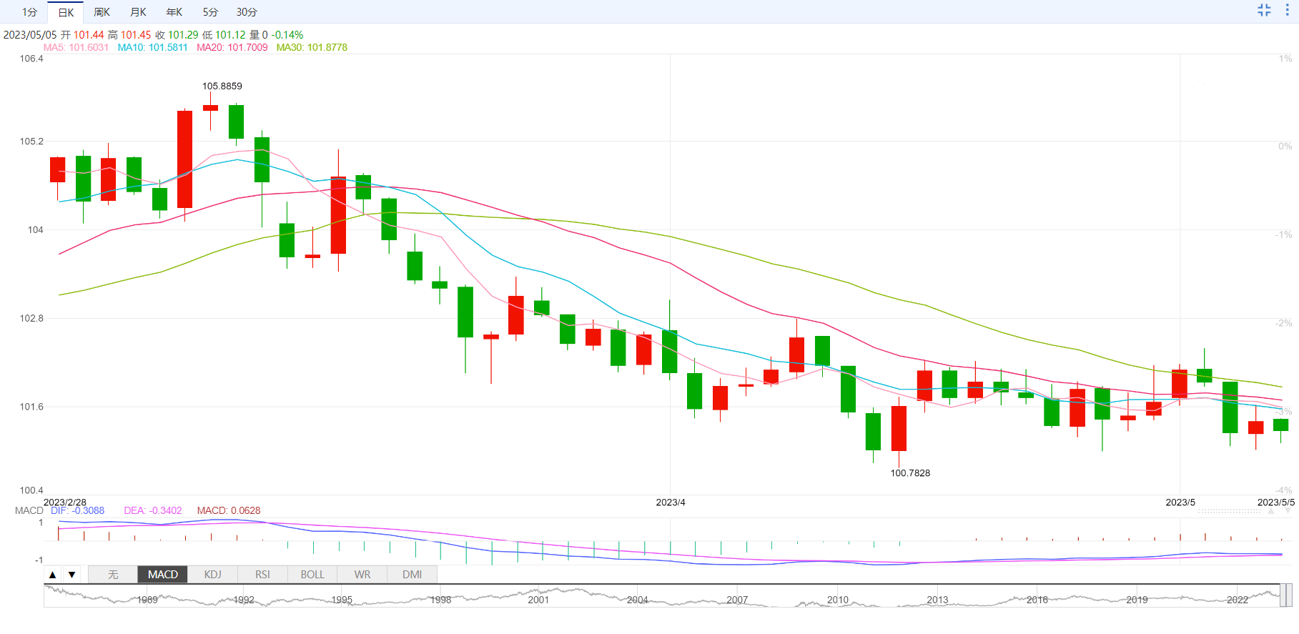 现在,美元指数下跌0.21%至101.24,在100.78(2023年4月14日的低点)之前的101.01(4月26日的周最低价)和100.00(心理水平)之间面临着最初的竞争。