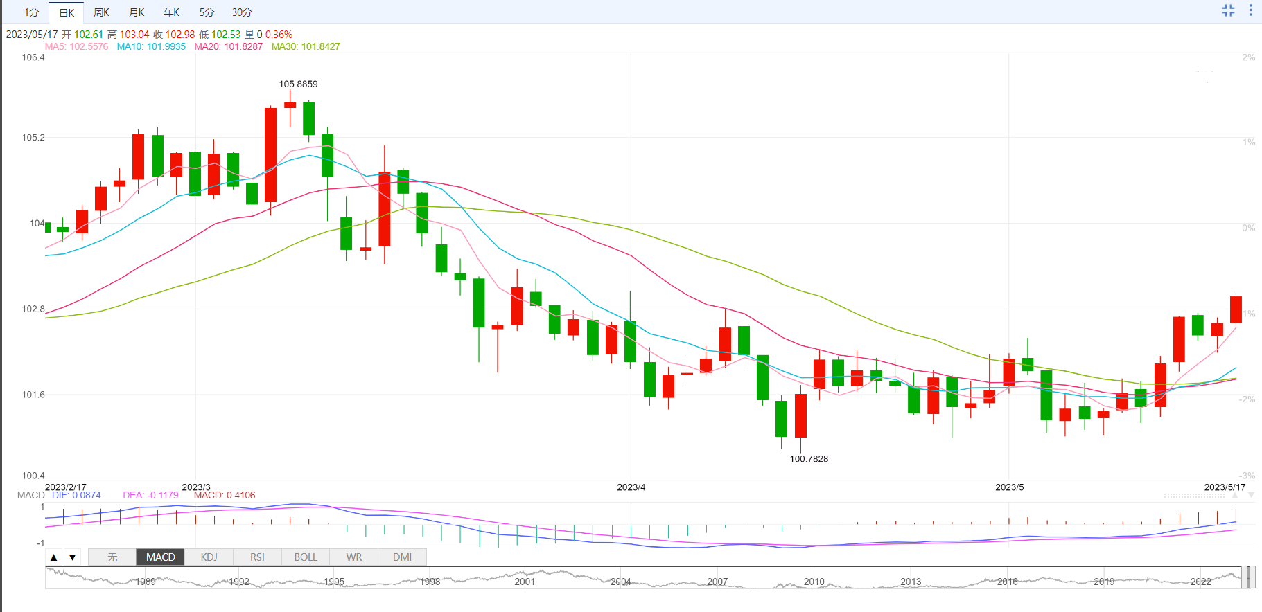 现在,美元指数上涨0.23%至102.82,突破103.05(4月3日的月高点)可能会打开通往105.80(200日移动均线)和105.88(2023年3月8日的高点)的大门。
