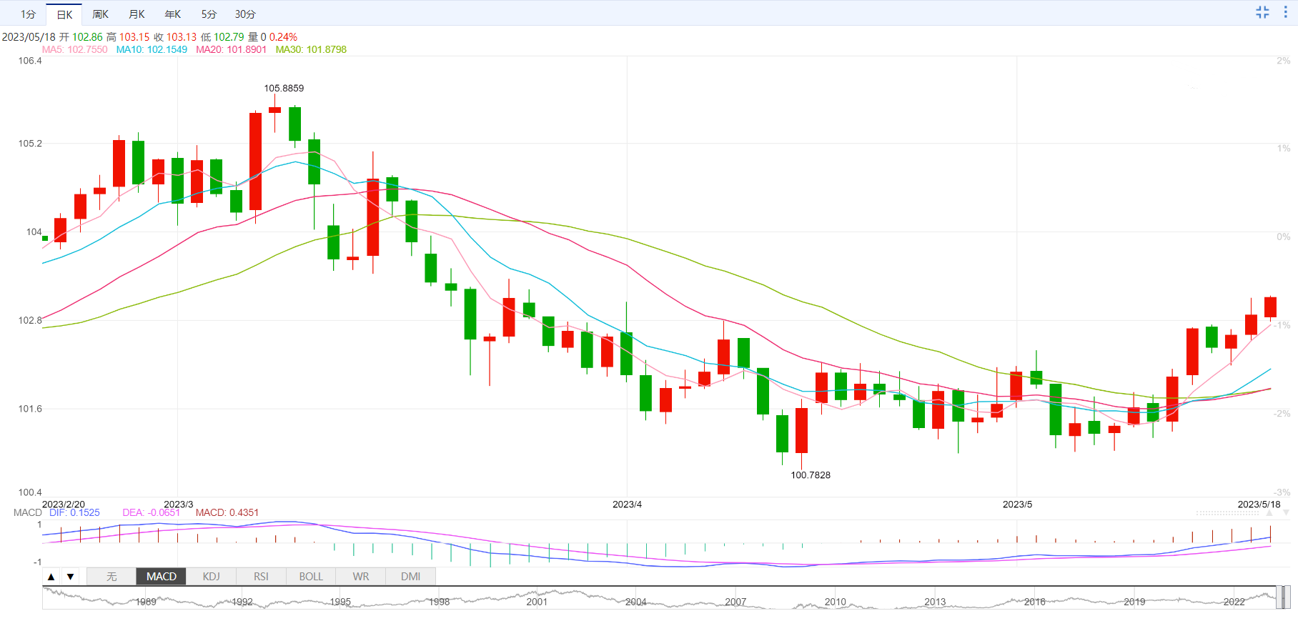 现在,美元指数上涨0.10%,至102.96点,突破103.11点(5月17日的月度高点)可能会为105.79点(200天SMA)和105.88点(2023年3月8日的高点)打开大门。
