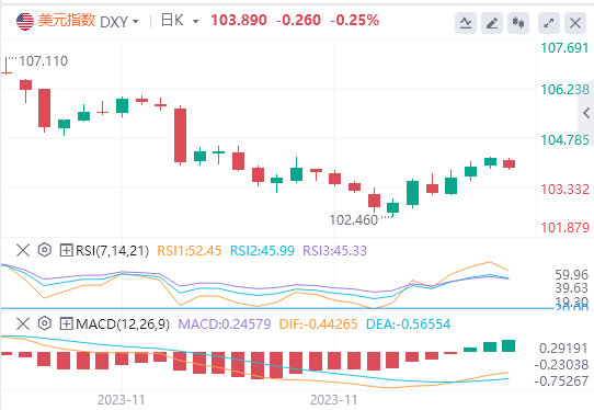 技术面上,随着美元指数在11月抛售后反弹,预计美元指数近期阻力位见于104.55、105.4和106。支撑位见于102.55、101.75和100.55。理想情况下,美元指数保持在下跌的50日移动均线附近或以下,将支持反弹做空的观点。