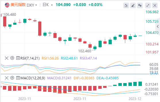 上周五公布强劲的劳动力市场数据后,受收益率上升和对美联储鸽派押注降温的提振,美元目前正呈现强劲上涨趋势,交易价格为104.10。本周,美国将公布11月的消费者价格指数(CPI)数据,美联储将于周三召开会议。