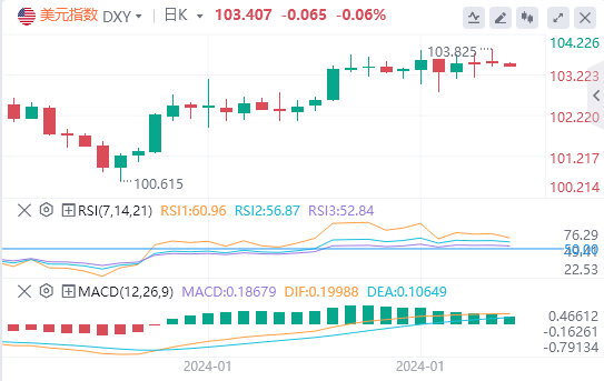 美元指数周一飙升,报103.75,涨幅创下12月中旬以来的最高水平。这一飙升是在预计是多事之秋之前,美联储(Fed)将于周三公布2024年的首次决定,周五将公布美国的关键劳动力市场数据。