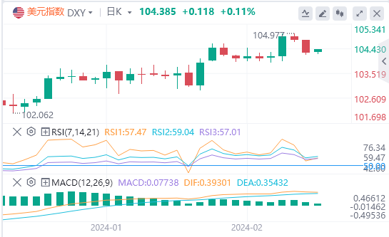 然而,尽管有这些短期负面指标,美元指数仍高于20、100和200天简单移动平均线(SMA),表明整体趋势仍由多头控制。