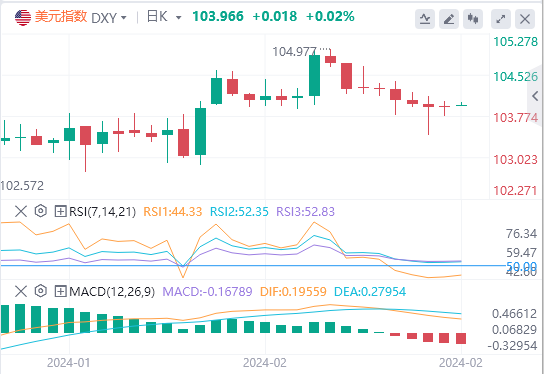 美元指数延续看跌基调,面临下一个关键争夺区域,即200日均线103.72。如果空头仍占主导,若美元指数跌破该水平,则美元前景转为看跌,为可能跌向1月24日创下的周低点102.77,然后是55日均线103.16打开大门。如果美元指数回落幅度更大,有可能跌至12月低点100.61(12月28日),然后跌至100.00心理关口和2023年低点99.57(7月14日)。