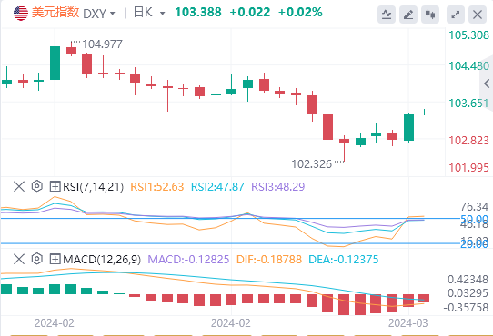 小幅上涨,录得0.07%的涨幅,至103.426。该指数目前徘徊在103.387的枢轴点附近,如果保持在该阈值上方,则显示出进一步上涨的潜力。