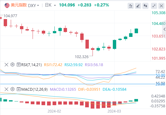 相反,支撑位在103.576、103.322和103.062,为遏制任何下跌提供了关键阈值。50天和200天指数移动平均线分别位于103.441和103.543,强化了103.794上方的看涨前景。