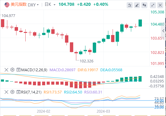 阻力位在104.736、104.978,上层位于105.248。相反,基础支撑位在104.187,再往前走几层是103.989和103.675。50天和200天指数移动平均线分别接近104.032和103.730,突显了该指数的看涨势头。