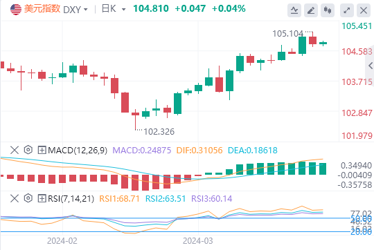 美元指数的整体情绪在104.71美元上方仍然看涨,但跌破这一门槛可能会引发大幅抛售趋势,表明市场力量之间存在微妙的平衡。