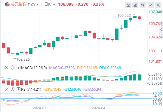 尽管略有下滑,但该指数仍略高于其枢轴点106.059,表明如果它能够保持在该阈值上方,则可能看涨。直接阻力位在106.654、107.365和107.934。超过这些可能预示着美元将进一步走强。