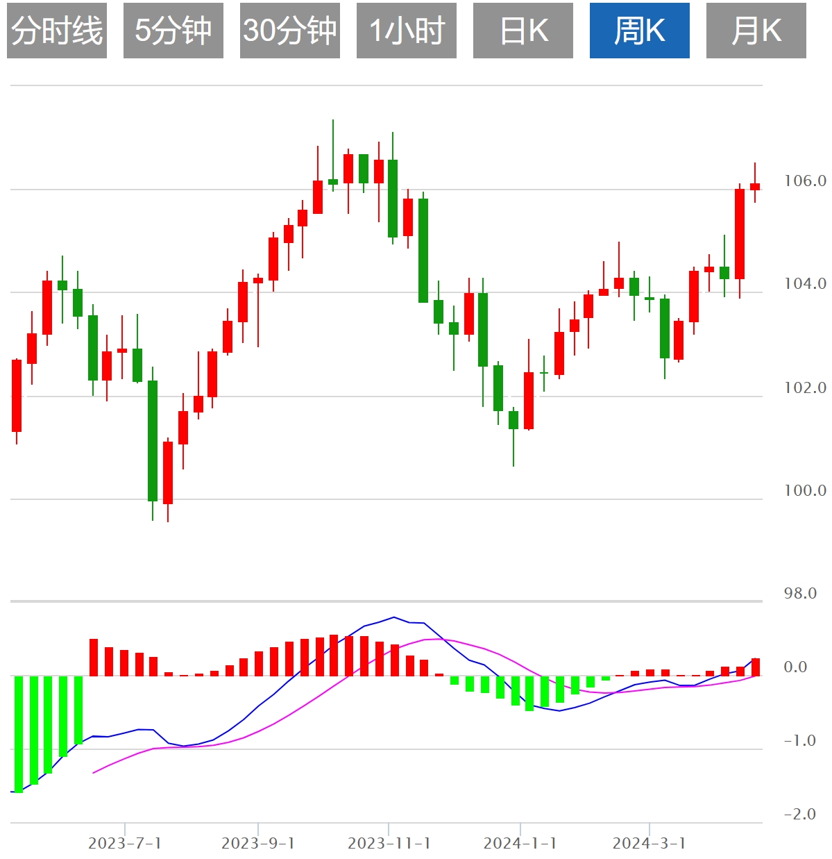 美国国债市场,2年期、5年期、10年期国债收益率均在下降。具体而言,2年期国债收益率为4.97%,5年期国债收益率为4.65%,10年期国债收益率为4.60%,但均接近数月高点。目前预计首次降息将推迟到9月举行的5月、6月和7月会议。