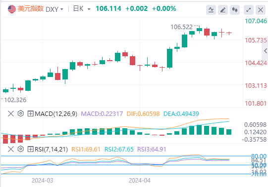 指数徘徊在105.93美元的枢轴点上方,表明可能在106.54美元关口附近出现阻力。进一步的阻力位在107.10美元和107.61美元,表明潜在的上行障碍。相反,支撑位在105.54美元,其次是105.22美元和104.90美元,如果指数下跌,它们可以起到缓冲作用。