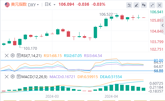 美国经济表现出持久的实力,收益率上升和强劲增长,有助于美元稳定。一些美联储官员开始考虑加息,因为他们认为通胀没有进展。就目前而言,市场正在推迟宽松周期的开始。本周,美国将公布3月份的个人消费支出(PCE)和耐用品数据,第一季度的国内生产总值(GDP)估计值,以及4月份的标准普尔采购经理人指数(S&PPMI),所有这些都可能会影响对美联储下一次决定的预期。