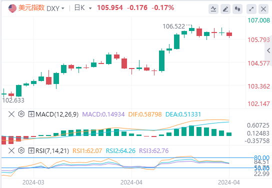 从好的方面来看,4月16日的高点106.52是要突破的水平。美元指数进一步上涨并突破107.00整数水平,可能遇到阻力位107.35,即10月3日的高点。