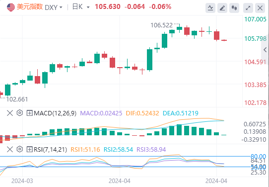 美联储(Fed)一直在发出一贯的鹰派信息,这可能会限制美元的跌幅,因为市场推迟了宽松周期的开始。投资者也在密切关注本周即将公布的重要经济报告,包括第一季度国内生产总值(GDP)增长率和3月份个人消费支出(PCE)物价指数的初步数据,以进一步了解经济健康状况。在周二的交易中,标准普尔采购经理人指数低于预期,使美元面临抛售压力。