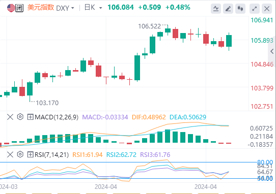 追踪美元兑六种主要货币的ICE美元指数周五收盘上涨0.49%,报106.09。