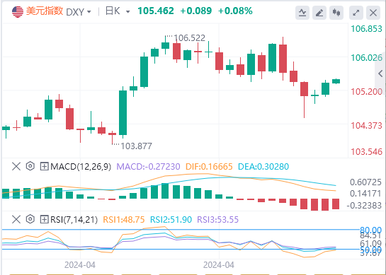 美元在日线图上,相对强弱指数(RSI)的正斜率表明存在上升势头,尽管处于负值区域。这表明空头目前占据主导地位,尽管买家正在反击。移动平均线趋同背离(MACD)显示红柱减少,进一步暗示卖家失去动力,并有可能转向上行势头。