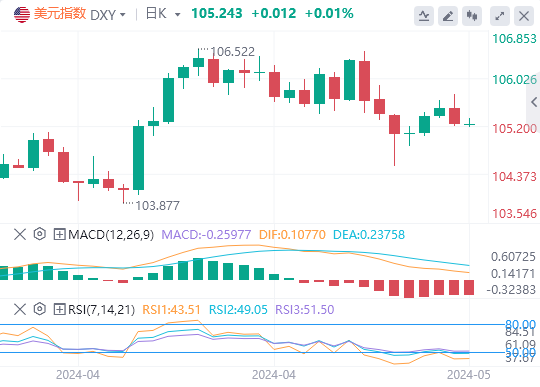 美国经济日历以联邦公开市场委员会(FOMC)成员鲍曼(Bowman)和巴尔(Barr)的讲话为特色,这些讲话可能会为未来的货币政策提供见解。密歇根大学5月消费者信心指数初值预计为76.3,略低于前值77.2,表明消费者信心可能下降。此外,初步通胀预期设定为3.2%。