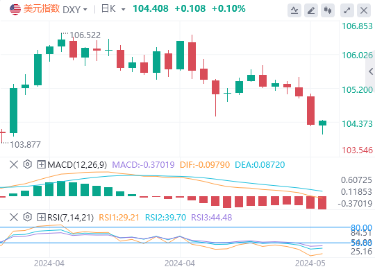 技术指标显示喜忧参半。50天指数移动平均线(EMA)位于105.111美元,200天EMA位于105.173美元,表明存在潜在阻力。该指数可能会在枢轴点104.078美元上方继续看涨。