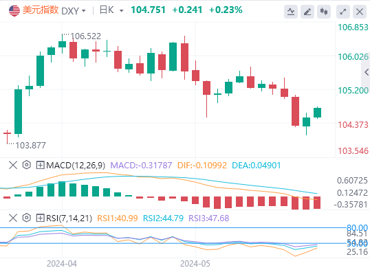 根据4小时图表,枢轴点为$104.597,为关键支撑位。直接阻力位在104.763美元,其次是104.920美元和105.146美元。