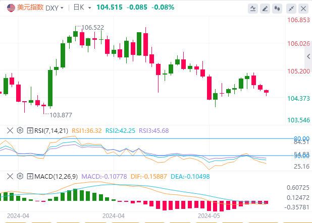 美元指数在104.538美元的枢轴点下方仍然看跌,突破该水平可能会提振看涨势头。