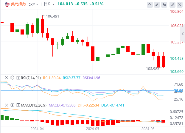 周一美元指数继续下跌至104.15区域,主要原因是美国供应管理协会(ISM)5月份PMI报告。该数据导致美国国债收益率下降,美联储9月降息的可能性略有增加。