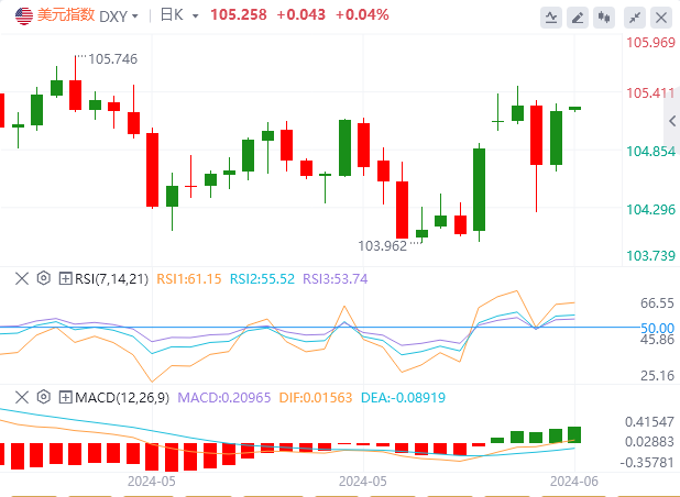 美元指标恢复至正值。相对强弱指数(RSI)目前位於50中线上方,移动平均线收敛散度(MACD)正在向上。 此外,美元指数目前趋势高於其20、100和200天简单移动平均线(SMA)。继周三大幅下跌後,这延续了美元的看涨前景。