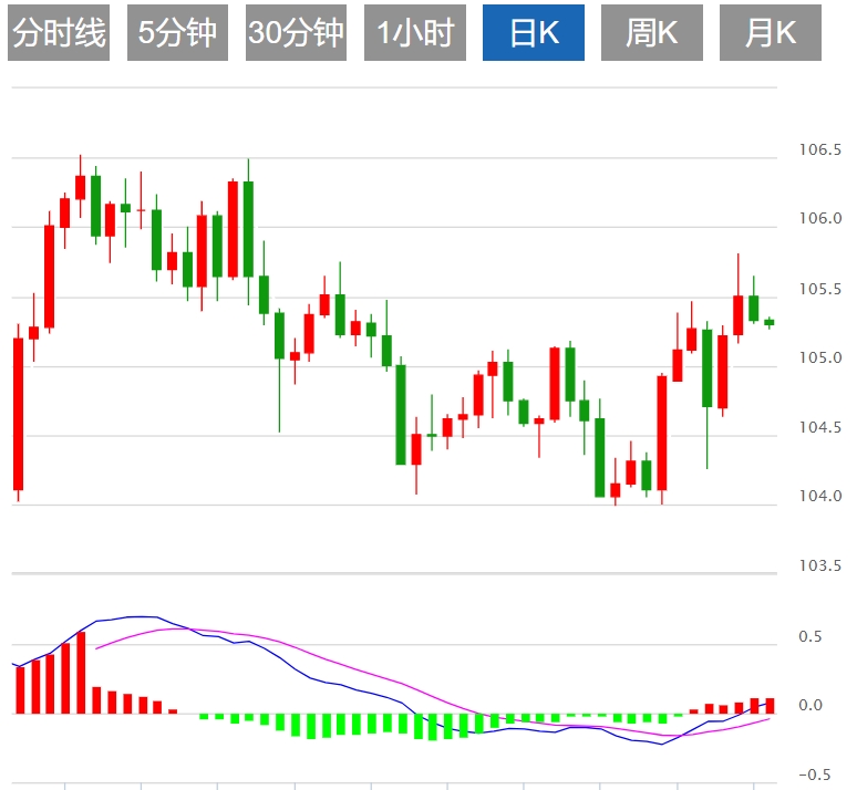 技术日图显示,美元指数总体保持积极立场。相对强弱指数 (RSI) 继续保持在 50 水平上方,移动平均收敛散度 (MACD) 继续呈现绿色条形。这意味着多头仍然强劲,这为进一步上涨敞开了大门。