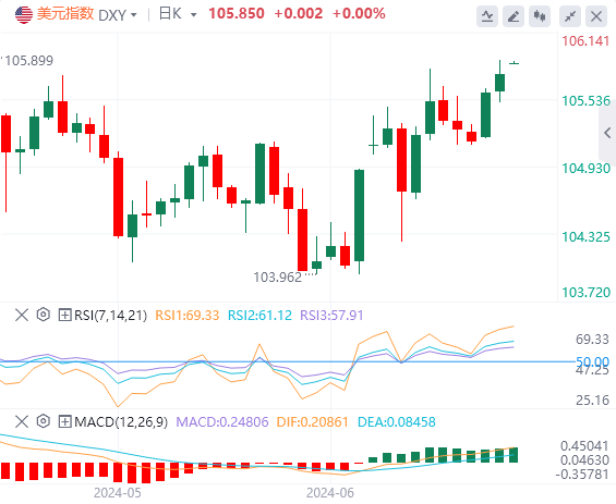 现在做多美元或许是明智之举,但一旦该指数的每日收盘价开始高于105.80,略低于106.00,“我会更愿意做多美元。我认为,美元目前有点不稳,因为外汇市场目前受到日元和瑞士法郎疲软的推动”。