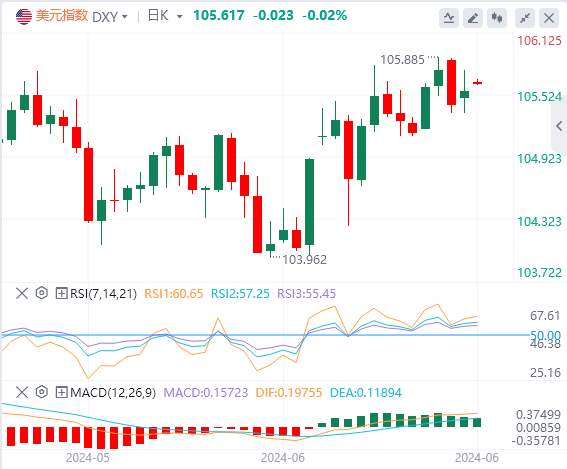 周二美元在本周开盘疲软后升至105.70。美国国债收益率的回升似乎忽略了盘中公布的消费者信心数据的小幅下降。
