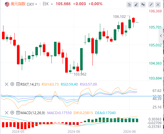 周四有限的下行空间使美元指数仍保持近期看涨立场,美元指数在200小时指数移动平均线(EMA)的北侧交易于105.58。美元指数本周触及两个月高点,跌破106.10,美元指数跟随粗略走高通道。