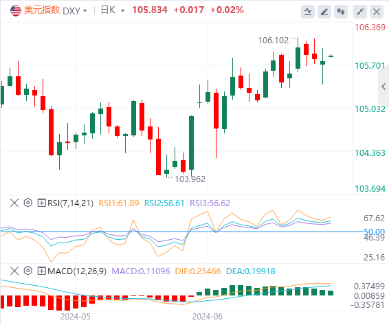 美元指数坚挺于20、100和200日简单移动平均线(SMA)上方,继续在5月以来的高位交易,106.50和106.00区域在其视线范围内。然而,观察者也应该关注105.50和105.00区域,以防出现潜在的下跌。