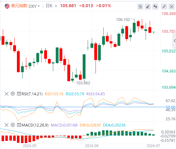 美元指数坚挺于20、100和200日简单移动平均线(SMA)上方,稳定在5月以来的高点,106.50和106.00区域均被视为目标。如果空头介入,投资者还应考虑回调至105.50和105.00区域的可能性。
