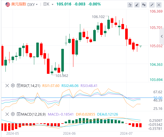 继美元指数上周跌破20日简单移动平均线(SMA)并缩水0.80%之后,技术前景已转向最坏情况。相对强弱指数(RSI)和移动平均收敛散度(MACD)均跌至负值区域。