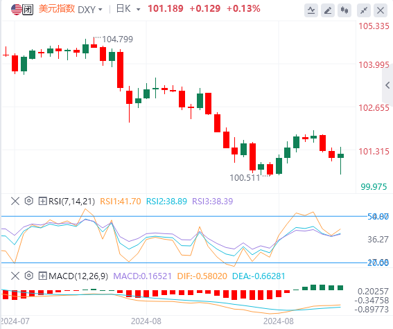 能首先跌至8月27日录得的2024年低点100.51,然后跌至心理上重要的100.00水平。看涨尝试应会在9月3日的9月顶部101.95(8月8日的周峰值103.54之前)和关键的200日均线遇到直接阻力。日间相对强弱指数(RSI)在过去几周跌入超卖区后已反弹至40水平附近。