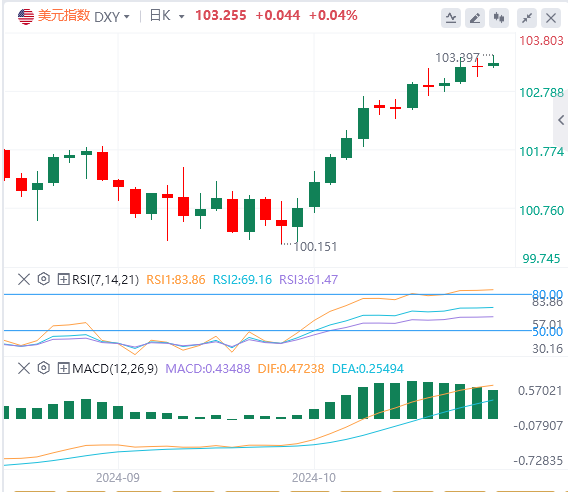 该指数一直保持在103.27美元的枢轴点上方,表明近期走强。