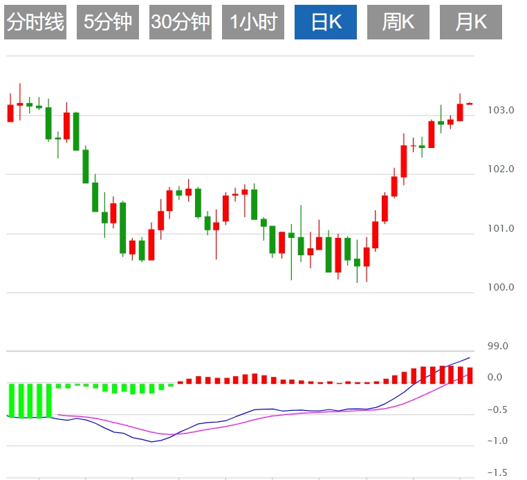 美元指数近期看涨。未来几周有足够的空间升向向104-106。只要保持在102.50上方,那么整体观点为看涨。