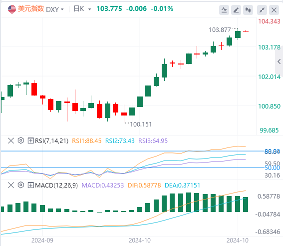 美元指数保持看涨势头,指标继续增强。该指数已突破关键的100日简单移动平均线(SMA),并瞄准200日简单移动平均线103.80。如果突破这一水平,将进一步增强看涨前景。