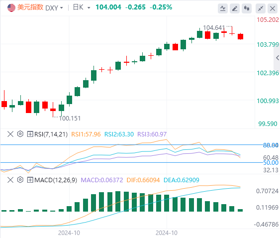 保持在该支点上方可能会使该指数看涨,直接阻力位在104.49美元,进一步目标为104.64美元和104.78美元。50天EMA为104.24美元,提供附近支撑,有助于维持该水平。