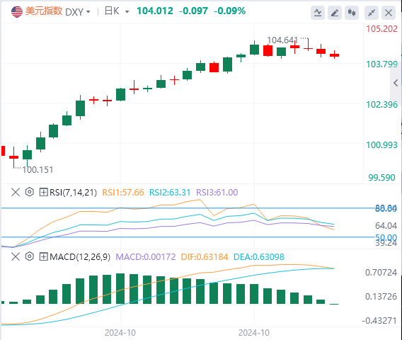 在枢轴点104.224美元下方面临一些看跌压力。位于104.192美元的50天EMA充当阻力点,推动指数走低,表明卖家可能仍占上风。