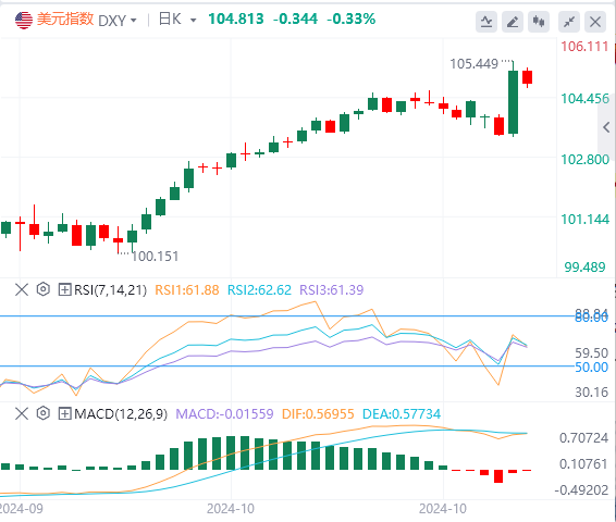 如果这一支撑让位于,我们可能会看到美元指数向50天EMA104.40美元倾斜,这是一个值得关注的关键水平。