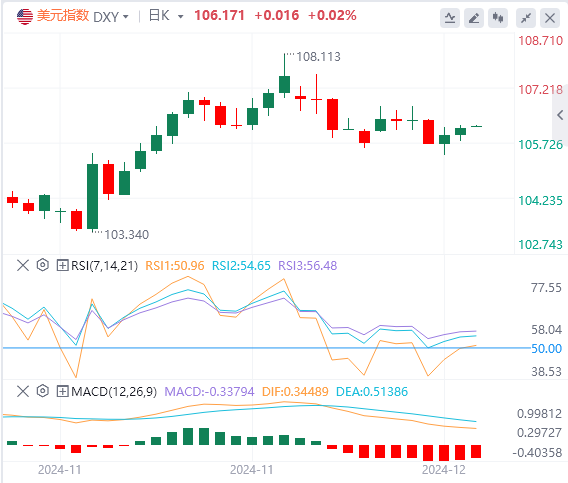 美元指数在106.00附近交易,因为市场正在为本周的关键数据发布做准备。预计11月消费者价格指数(CPI)年率将上涨2.7%,高于10月的2.6%,而核心CPI预计将稳定在3.3%。