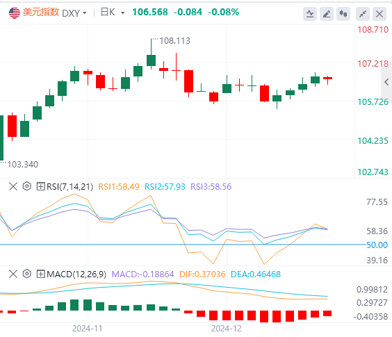 根据CME美联储观察工具,市场定价本月降息25个基点的概率为99%。当然,美联储仍在宽松周期的轨道上。美元指数跟随美联储基金利率的趋势(图2)。因此,如果美联储不逆转宽松周期,美元将可能下跌。特朗普担任总统后,如果在新的一年里真的将其关税政策全部实现,则可能成为推动这一趋势的关键因素,市场普遍预期这将带来通胀压力,促进美联储再次加息,进而推高美元。