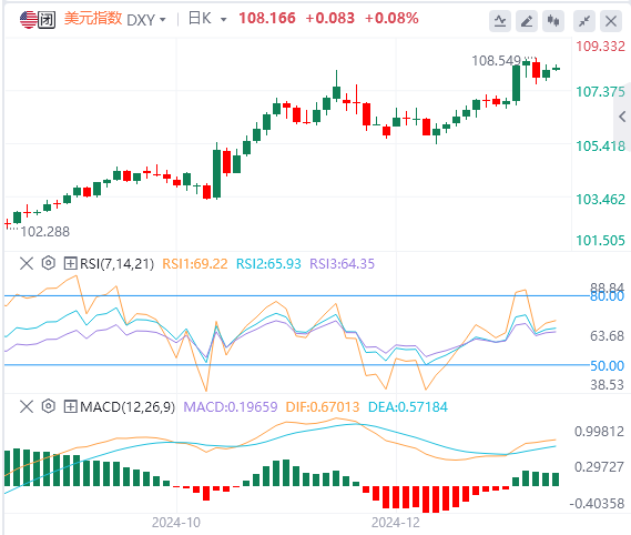 从技术角度来看,美元指数位于阻力位 108.30 – 108.50 下方。突破 108.50 水平将推动美元指数走向下一个阻力位 109.40 – 109.60。