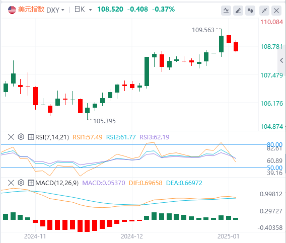 12月美国ISM制造业采购经理人指数从48.4改善至49.3,表明在对美国当选总统唐纳德·特朗普的扩张政策持乐观态度的情况下,经济有弹性和增长潜力的迹象。这反过来又验证了美联储(Fed)在12月的鹰派转变,暗示它将在2025年放慢降息步伐,这仍然支撑着美国国债收益率的上升。事实上,基准10年期美国政府债券的收益率达到了5月2日以来的最高点,有利于美元多头。